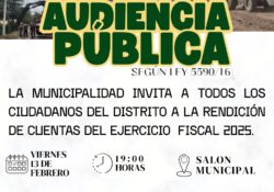 El Intendente Municipal invita a toda la ciudadanía a participar de la Audiencia Pública de Rendición de Cuentas, donde presentaremos de manera abierta y transparente los resultados, acciones y datos de la gestión correspondiente al año fiscal 2025. Un espacio… Continuar leyendo